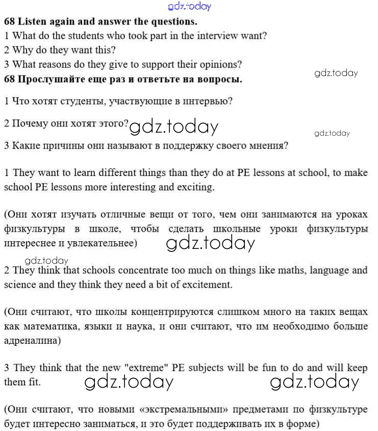 На страницах сайта gdz.today вы найдете учебный и вспомогательный материал, направленный на улучшения знаний школьной программы. ГДЗ - онлайн мир знаний Решение к Unit 1. Start anew 68 Учебнику по Английскому языку для 10 класса Биболетова, Денисенко Аст/Астрель Enjoy English 2016