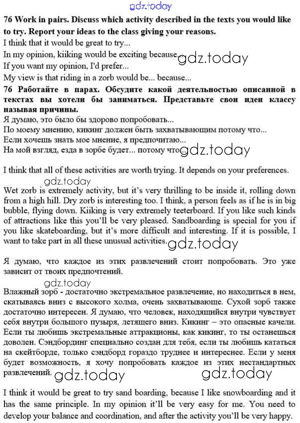 На страницах сайта gdz.today вы найдете учебный и вспомогательный материал, направленный на улучшения знаний школьной программы. ГДЗ - онлайн мир знаний Решение к Unit 1. Start anew 76 Учебнику по Английскому языку для 10 класса Биболетова, Денисенко Аст/Астрель Enjoy English 2016