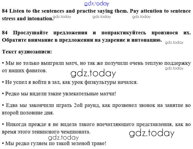 На страницах сайта gdz.today вы найдете учебный и вспомогательный материал, направленный на улучшения знаний школьной программы. ГДЗ - онлайн мир знаний Решение к Unit 1. Start anew 84 Учебнику по Английскому языку для 10 класса Биболетова, Денисенко Аст/Астрель Enjoy English 2016
