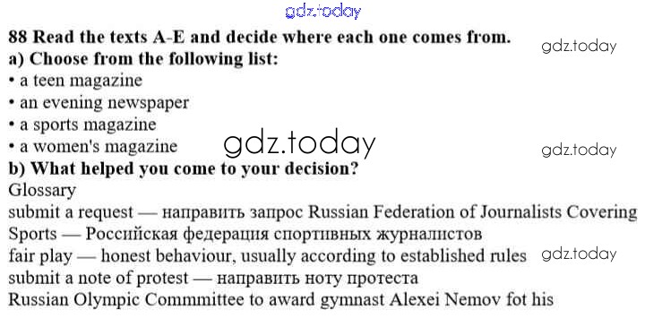 На страницах сайта gdz.today вы найдете учебный и вспомогательный материал, направленный на улучшения знаний школьной программы. ГДЗ - онлайн мир знаний Решение к Unit 1. Start anew 88 Учебнику по Английскому языку для 10 класса Биболетова, Денисенко Аст/Астрель Enjoy English 2016