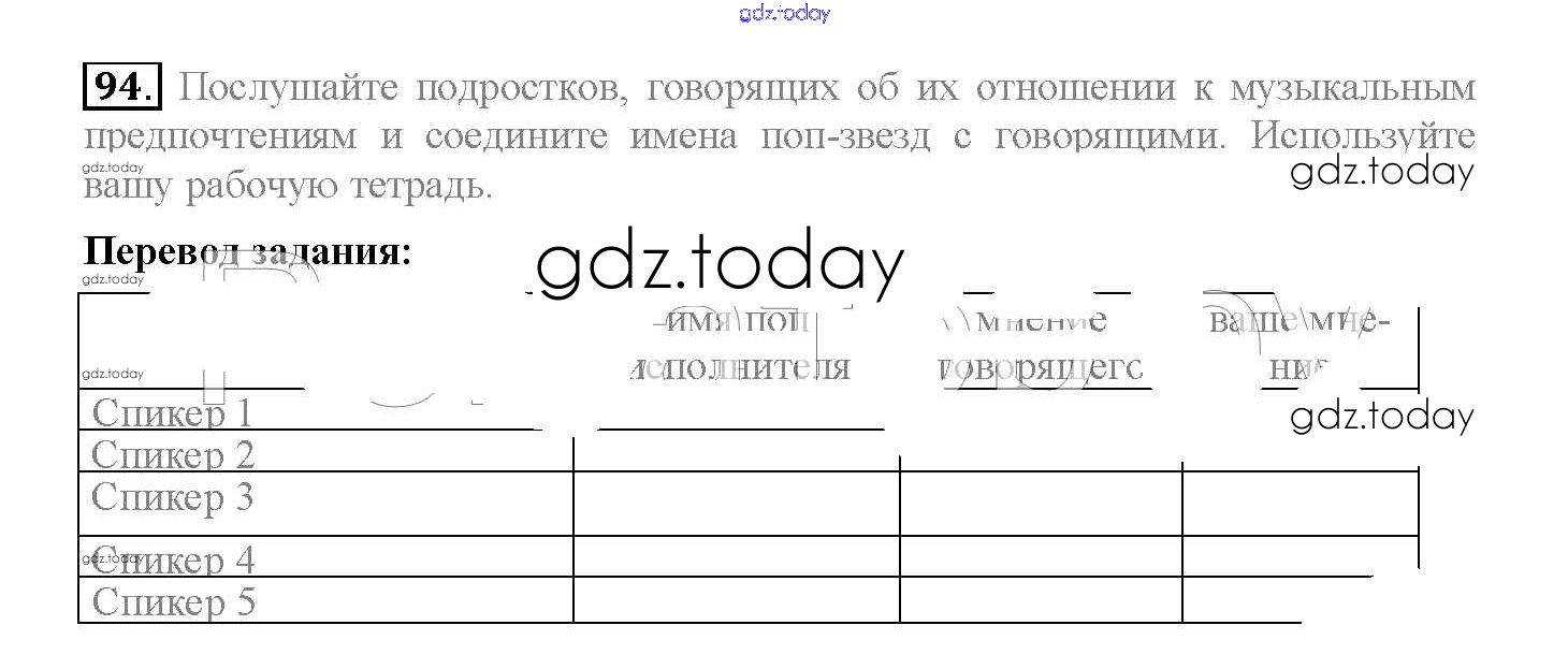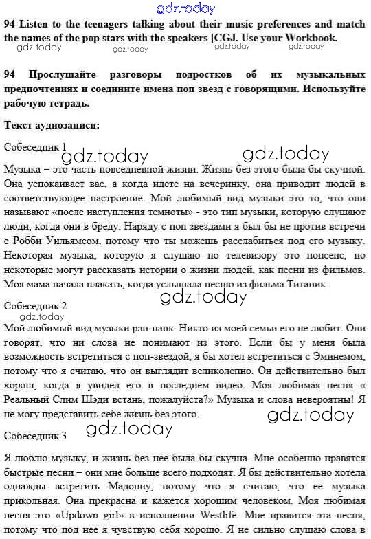 На страницах сайта gdz.today вы найдете учебный и вспомогательный материал, направленный на улучшения знаний школьной программы. ГДЗ - онлайн мир знаний Решение к Unit 1. Start anew 94 Учебнику по Английскому языку для 10 класса Биболетова, Денисенко Аст/Астрель Enjoy English 2016