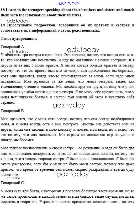 На страницах сайта gdz.today вы найдете учебный и вспомогательный материал, направленный на улучшения знаний школьной программы. ГДЗ - онлайн мир знаний Решение к Unit 2. Talking on family matters 18 Учебнику по Английскому языку для 10 класса Биболетова, Денисенко Аст/Астрель Enjoy English 2016