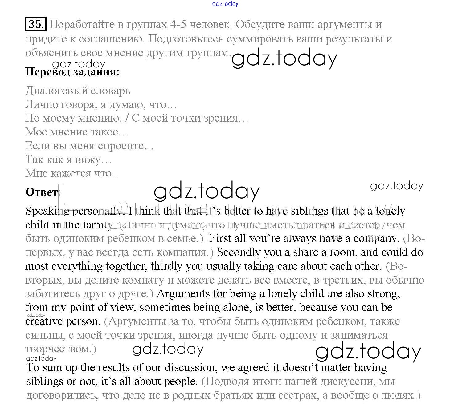 На страницах сайта gdz.today вы найдете учебный и вспомогательный материал, направленный на улучшения знаний школьной программы. ГДЗ - онлайн мир знаний Решение к Unit 2. Talking on family matters 35 Учебнику по Английскому языку для 10 класса Биболетова, Денисенко Аст/Астрель Enjoy English 2016