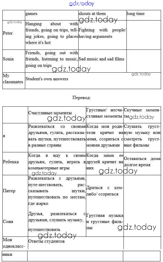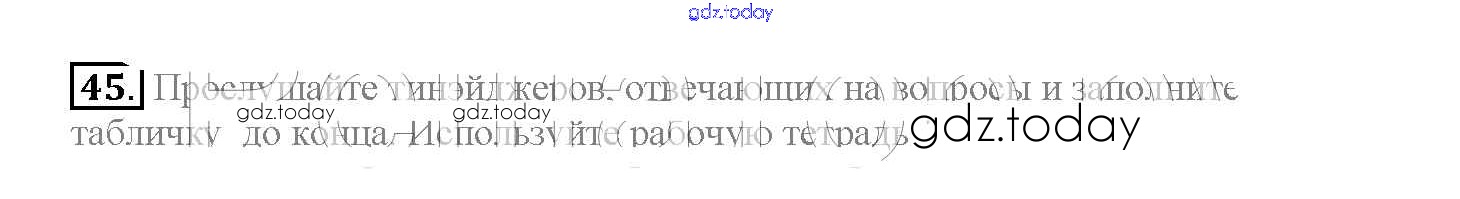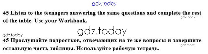 На страницах сайта gdz.today вы найдете учебный и вспомогательный материал, направленный на улучшения знаний школьной программы. ГДЗ - онлайн мир знаний Решение к Unit 2. Talking on family matters 45 Учебнику по Английскому языку для 10 класса Биболетова, Денисенко Аст/Астрель Enjoy English 2016