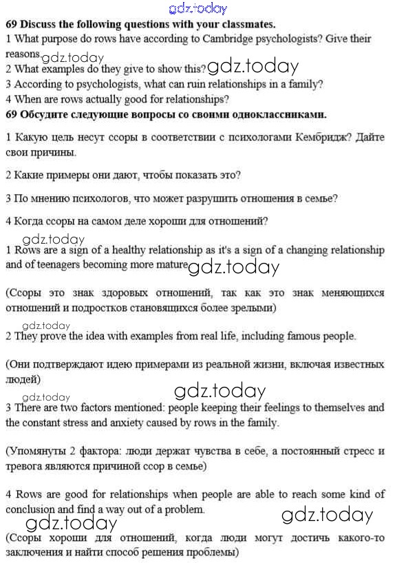 Ответы к Решение к Unit 2. Talking on family matters 69 Учебнику по Английскому языку для 10 класса Биболетова, Денисенко Аст/Астрель Enjoy English 2016