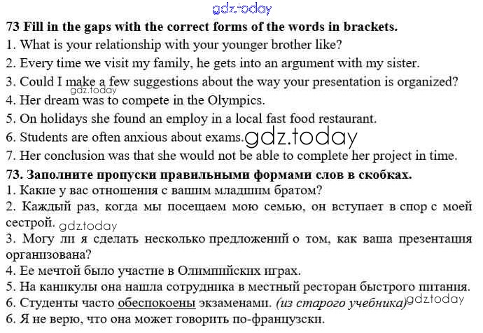 На страницах сайта gdz.today вы найдете учебный и вспомогательный материал, направленный на улучшения знаний школьной программы. ГДЗ - онлайн мир знаний Решение к Unit 2. Talking on family matters 73 Учебнику по Английскому языку для 10 класса Биболетова, Денисенко Аст/Астрель Enjoy English 2016