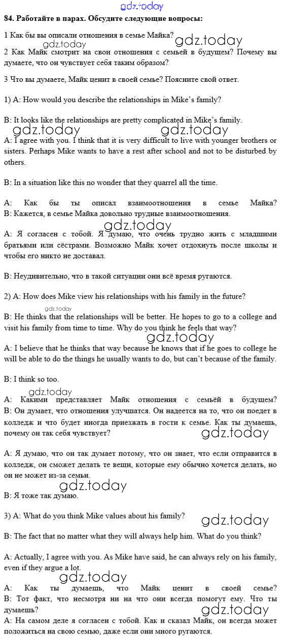 Ответы к Решение к Unit 2. Talking on family matters 84 Учебнику по Английскому языку для 10 класса Биболетова, Денисенко Аст/Астрель Enjoy English 2016