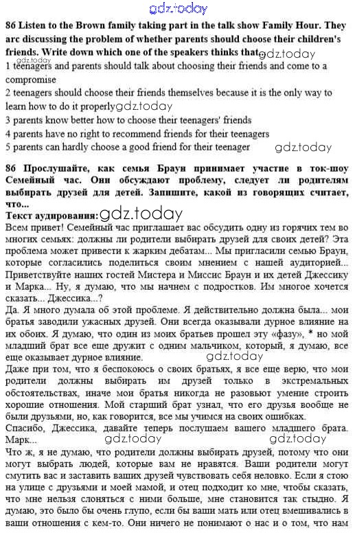 Ответы к Решение к Unit 2. Talking on family matters 86 Учебнику по Английскому языку для 10 класса Биболетова, Денисенко Аст/Астрель Enjoy English 2016