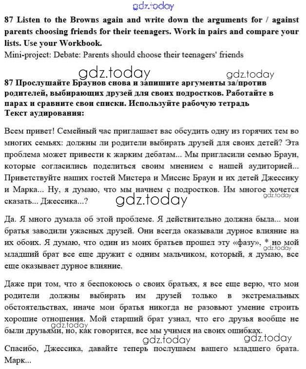 Ответы к Решение к Unit 2. Talking on family matters 87 Учебнику по Английскому языку для 10 класса Биболетова, Денисенко Аст/Астрель Enjoy English 2016