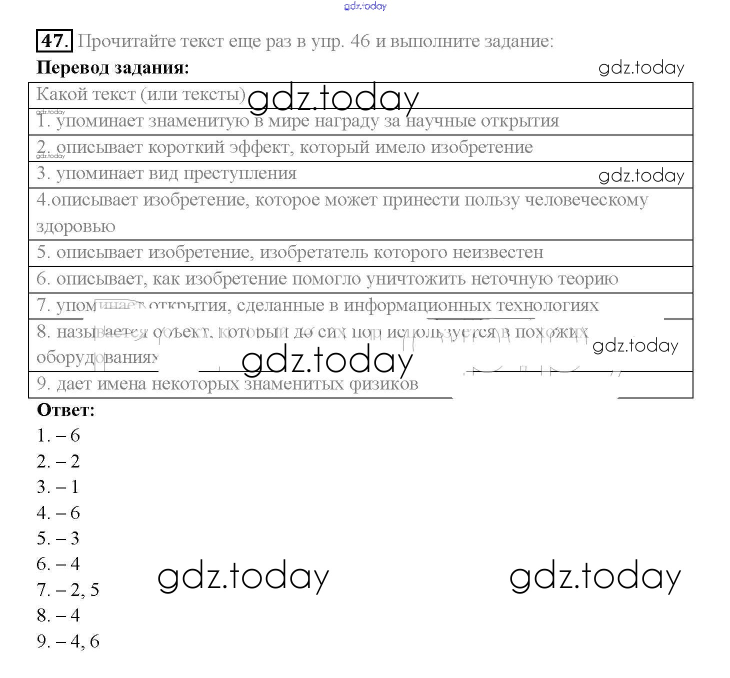 На страницах сайта gdz.today вы найдете учебный и вспомогательный материал, направленный на улучшения знаний школьной программы. ГДЗ - онлайн мир знаний Решение к Unit 3. Civilisation and progress 47 Учебнику по Английскому языку для 10 класса Биболетова, Денисенко Аст/Астрель Enjoy English 2016