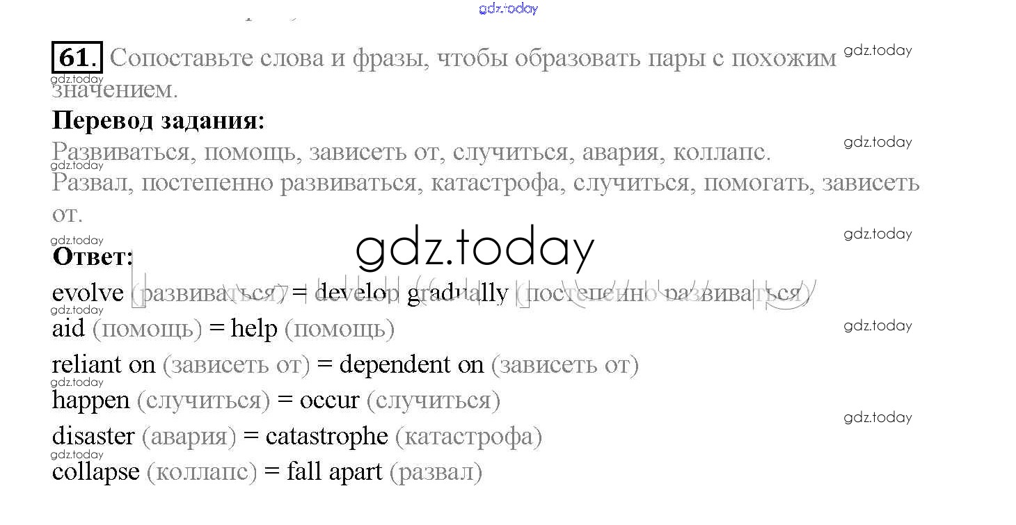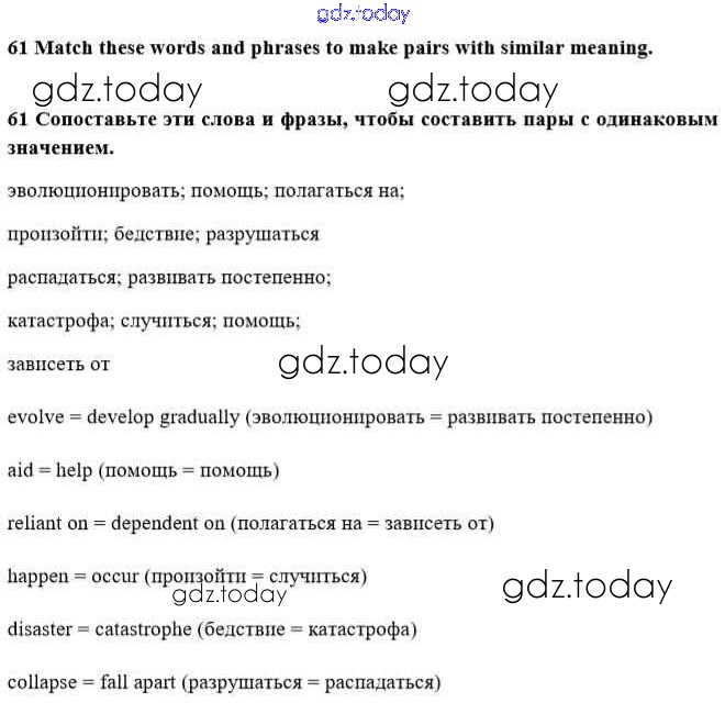 На страницах сайта gdz.today вы найдете учебный и вспомогательный материал, направленный на улучшения знаний школьной программы. ГДЗ - онлайн мир знаний Решение к Unit 3. Civilisation and progress 61 Учебнику по Английскому языку для 10 класса Биболетова, Денисенко Аст/Астрель Enjoy English 2016