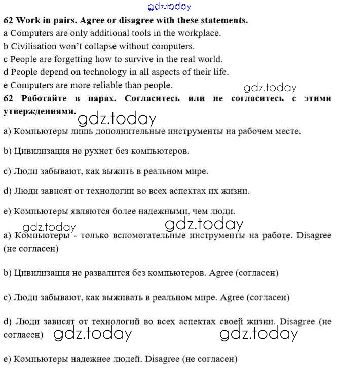 Ответы к Решение к Unit 3. Civilisation and progress 62 Учебнику по Английскому языку для 10 класса Биболетова, Денисенко Аст/Астрель Enjoy English 2016