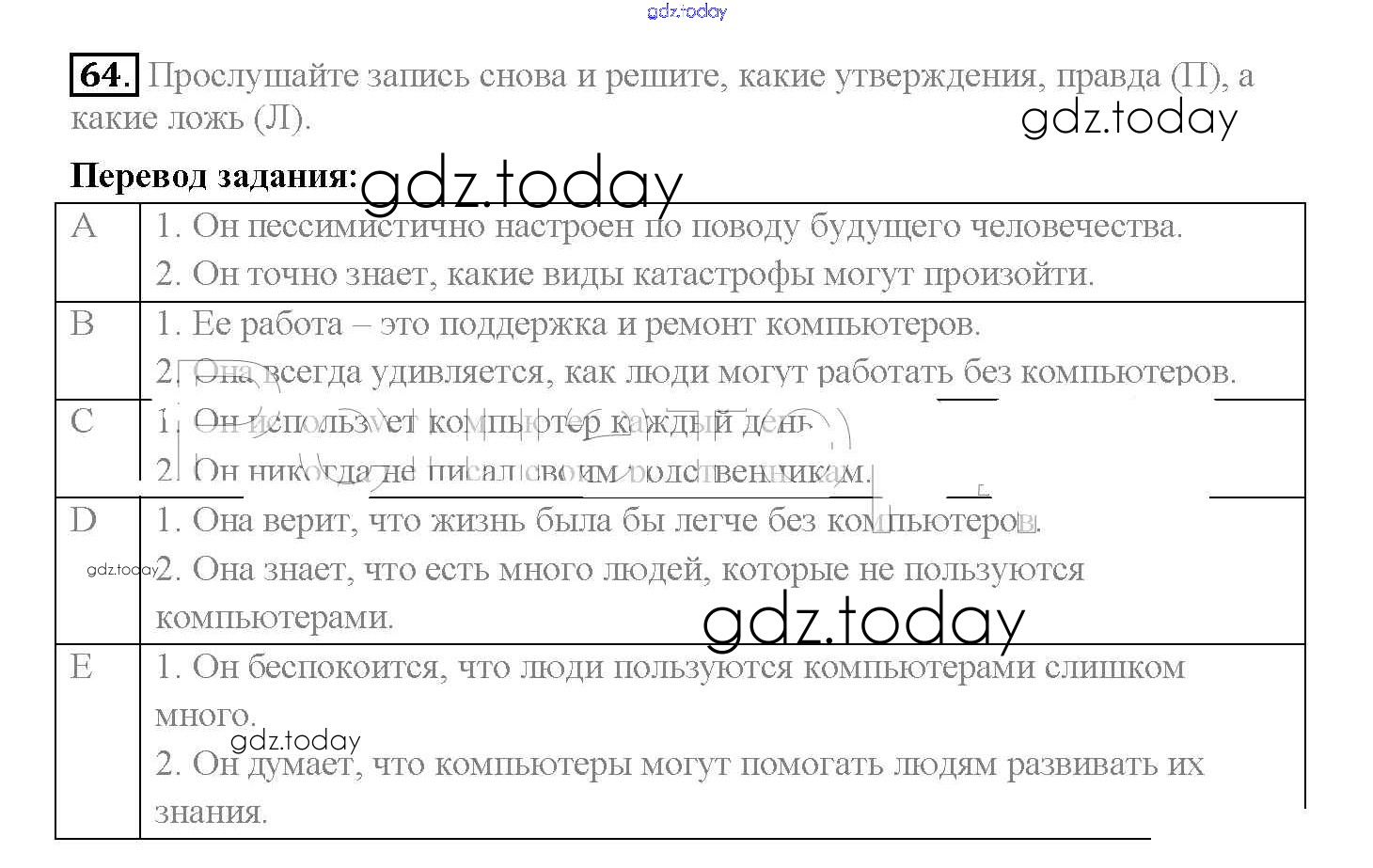 На страницах сайта gdz.today вы найдете учебный и вспомогательный материал, направленный на улучшения знаний школьной программы. ГДЗ - онлайн мир знаний Решение к Unit 3. Civilisation and progress 64 Учебнику по Английскому языку для 10 класса Биболетова, Денисенко Аст/Астрель Enjoy English 2016