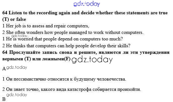 Ответы к Решение к Unit 3. Civilisation and progress 64 Учебнику по Английскому языку для 10 класса Биболетова, Денисенко Аст/Астрель Enjoy English 2016