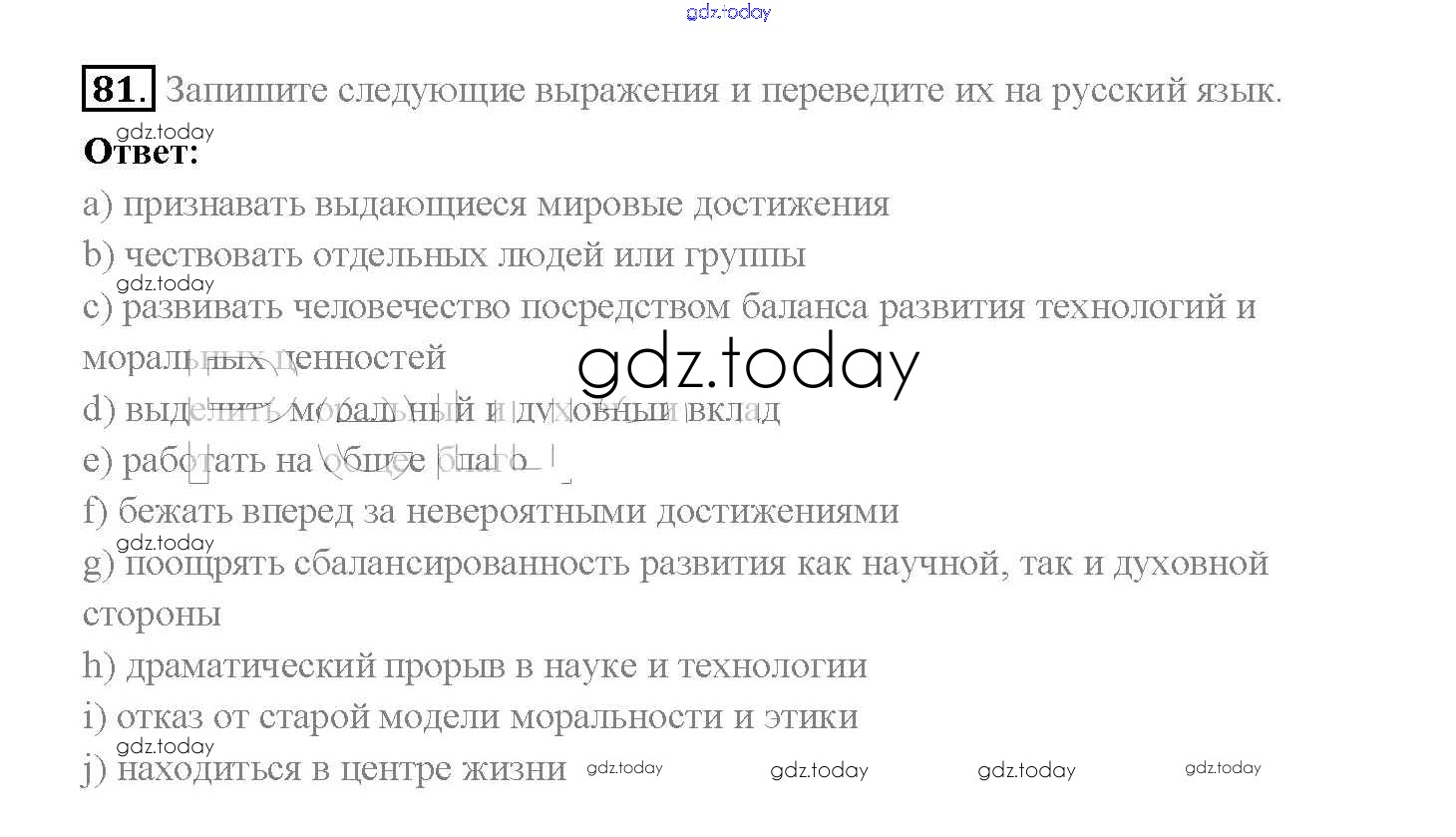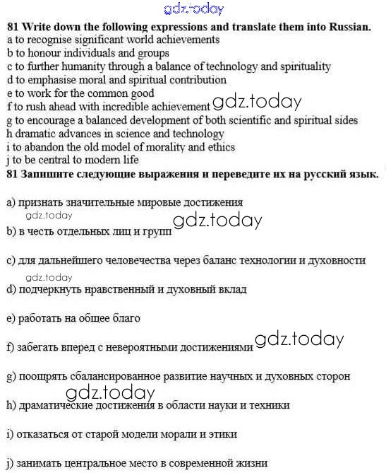 На страницах сайта gdz.today вы найдете учебный и вспомогательный материал, направленный на улучшения знаний школьной программы. ГДЗ - онлайн мир знаний Решение к Unit 3. Civilisation and progress 81 Учебнику по Английскому языку для 10 класса Биболетова, Денисенко Аст/Астрель Enjoy English 2016