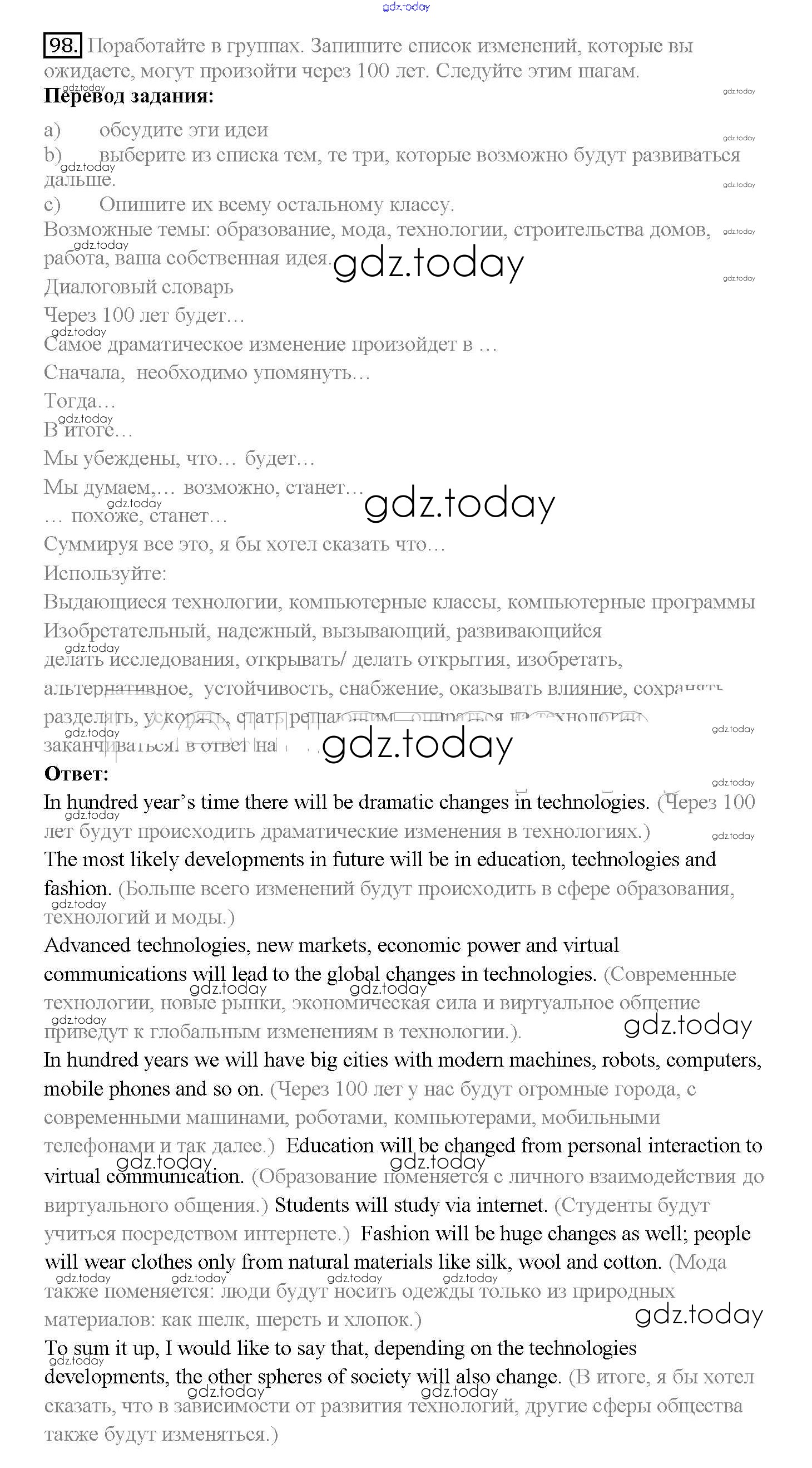 Ответы к Решение к Unit 3. Civilisation and progress 98 Учебнику по Английскому языку для 10 класса Биболетова, Денисенко Аст/Астрель Enjoy English 2016