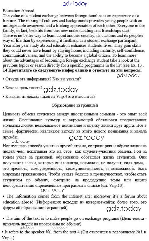 На страницах сайта gdz.today вы найдете учебный и вспомогательный материал, направленный на улучшения знаний школьной программы. ГДЗ - онлайн мир знаний Решение к Unit 4. The world of opportunities 14 Учебнику по Английскому языку для 10 класса Биболетова, Денисенко Аст/Астрель Enjoy English 2016