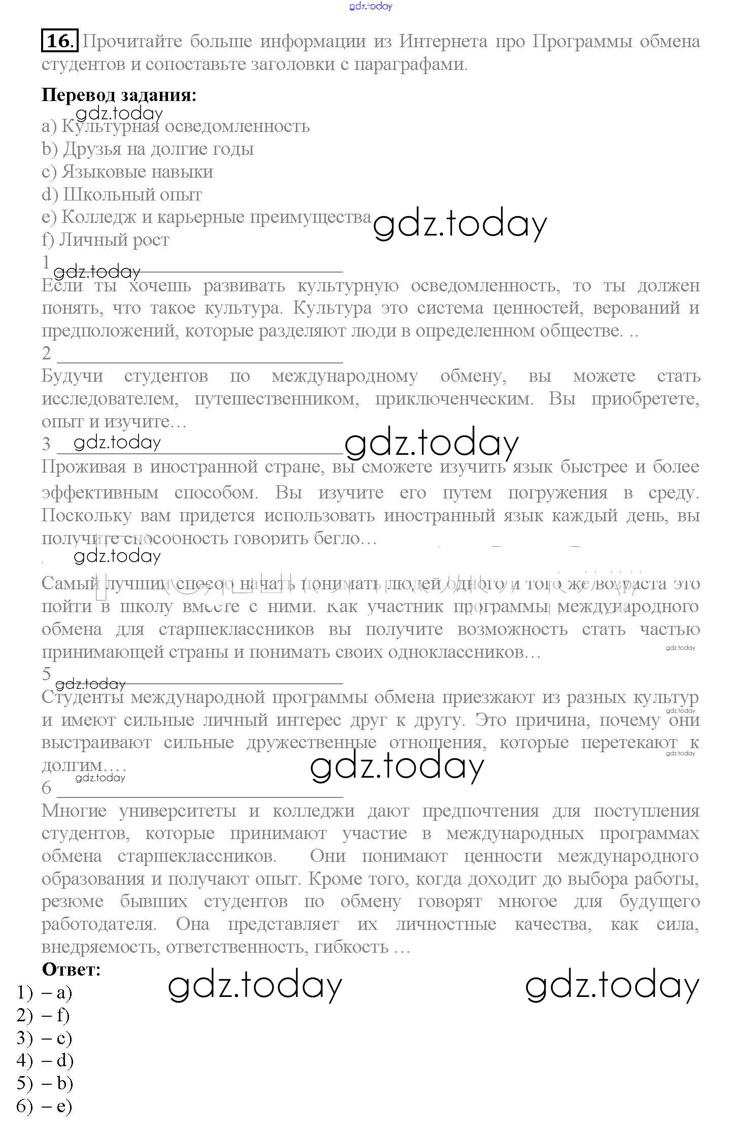 На страницах сайта gdz.today вы найдете учебный и вспомогательный материал, направленный на улучшения знаний школьной программы. ГДЗ - онлайн мир знаний Решение к Unit 4. The world of opportunities 16 Учебнику по Английскому языку для 10 класса Биболетова, Денисенко Аст/Астрель Enjoy English 2016
