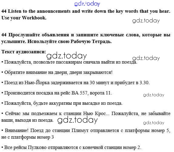 На страницах сайта gdz.today вы найдете учебный и вспомогательный материал, направленный на улучшения знаний школьной программы. ГДЗ - онлайн мир знаний Решение к Unit 4. The world of opportunities 44 Учебнику по Английскому языку для 10 класса Биболетова, Денисенко Аст/Астрель Enjoy English 2016
