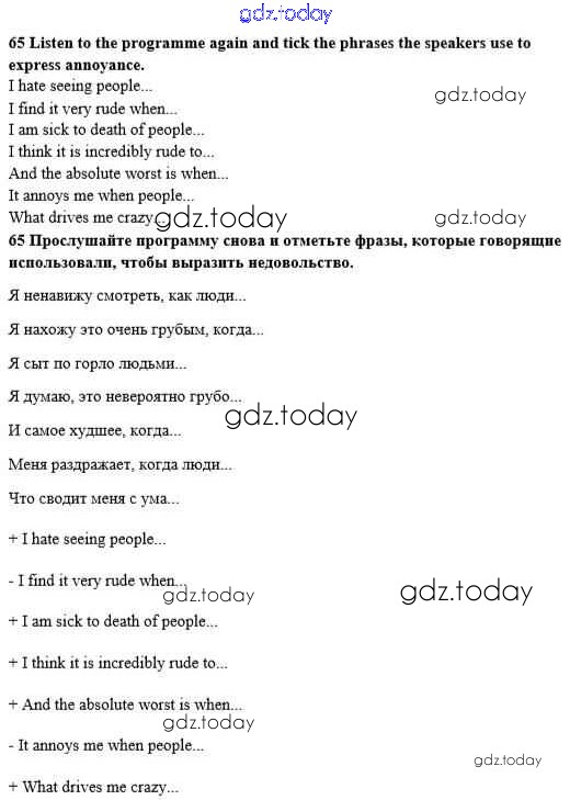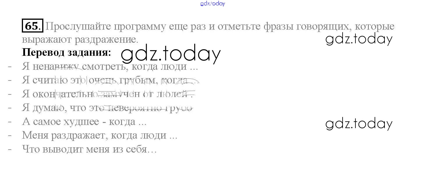 На страницах сайта gdz.today вы найдете учебный и вспомогательный материал, направленный на улучшения знаний школьной программы. ГДЗ - онлайн мир знаний Решение к Unit 4. The world of opportunities 65 Учебнику по Английскому языку для 10 класса Биболетова, Денисенко Аст/Астрель Enjoy English 2016