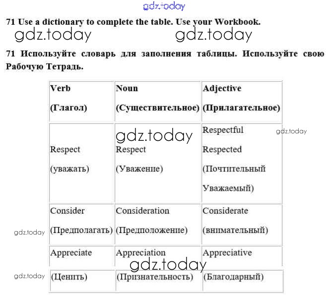 На страницах сайта gdz.today вы найдете учебный и вспомогательный материал, направленный на улучшения знаний школьной программы. ГДЗ - онлайн мир знаний Решение к Unit 4. The world of opportunities 71 Учебнику по Английскому языку для 10 класса Биболетова, Денисенко Аст/Астрель Enjoy English 2016
