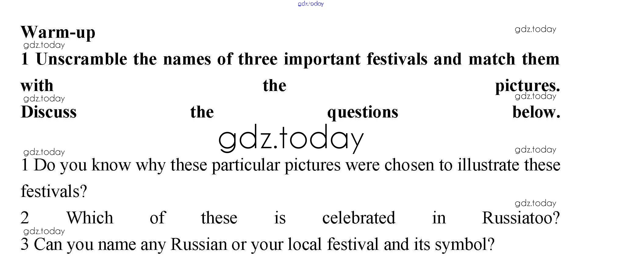На страницах сайта gdz.today вы найдете учебный и вспомогательный материал, направленный на улучшения знаний школьной программы. ГДЗ - онлайн мир знаний Уроки 1-2 Решение к Unit 3. A time to celebrate 1 Учебнику по Английскому языку для 10 класса Гроза, Дворецкая Титул New Millennium 2014