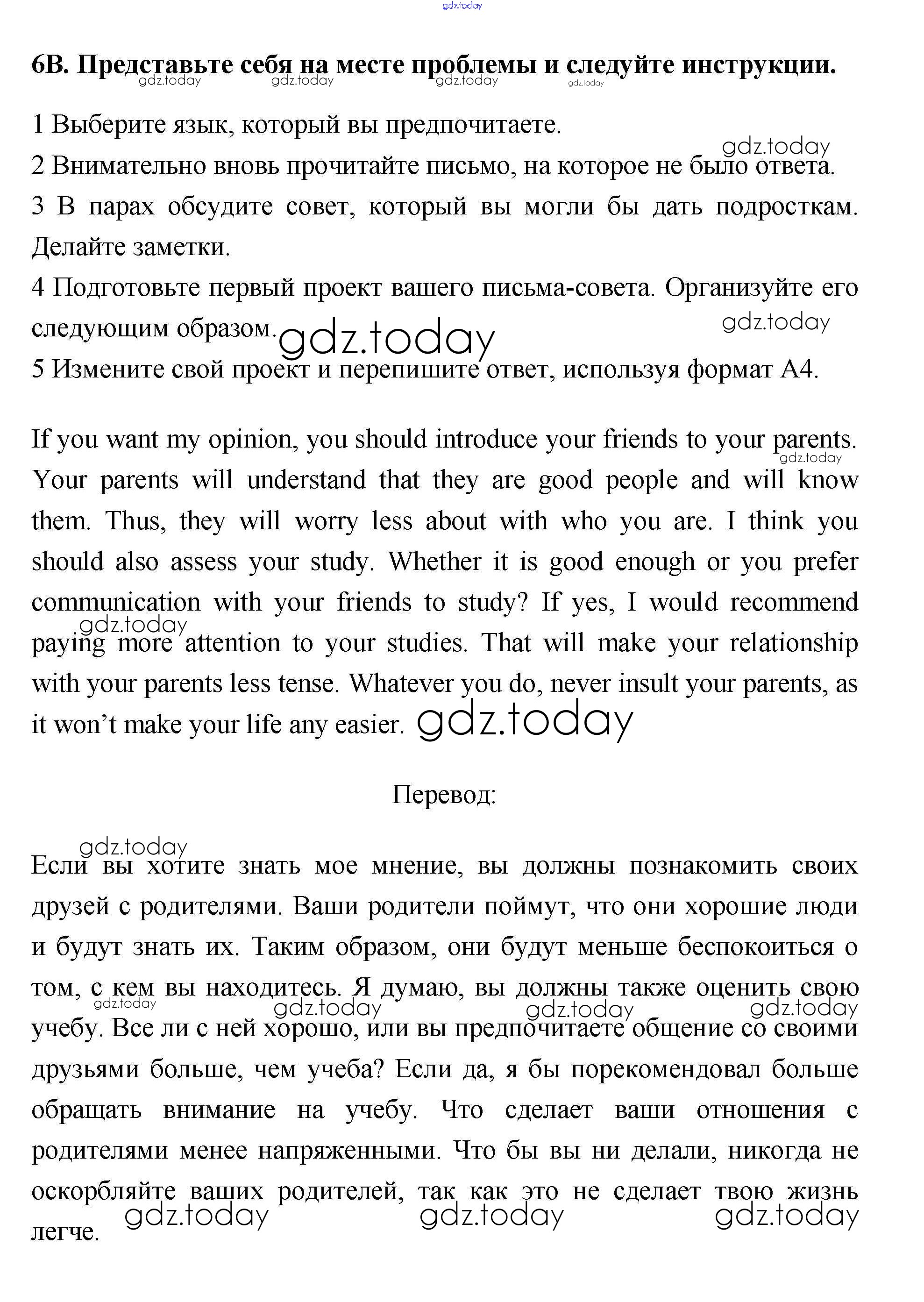 На страницах сайта gdz.today вы найдете учебный и вспомогательный материал, направленный на улучшения знаний школьной программы. ГДЗ - онлайн мир знаний Уроки 7-8 Решение к Unit 5. Family issues 6 Учебнику по Английскому языку для 10 класса Гроза, Дворецкая Титул New Millennium 2014