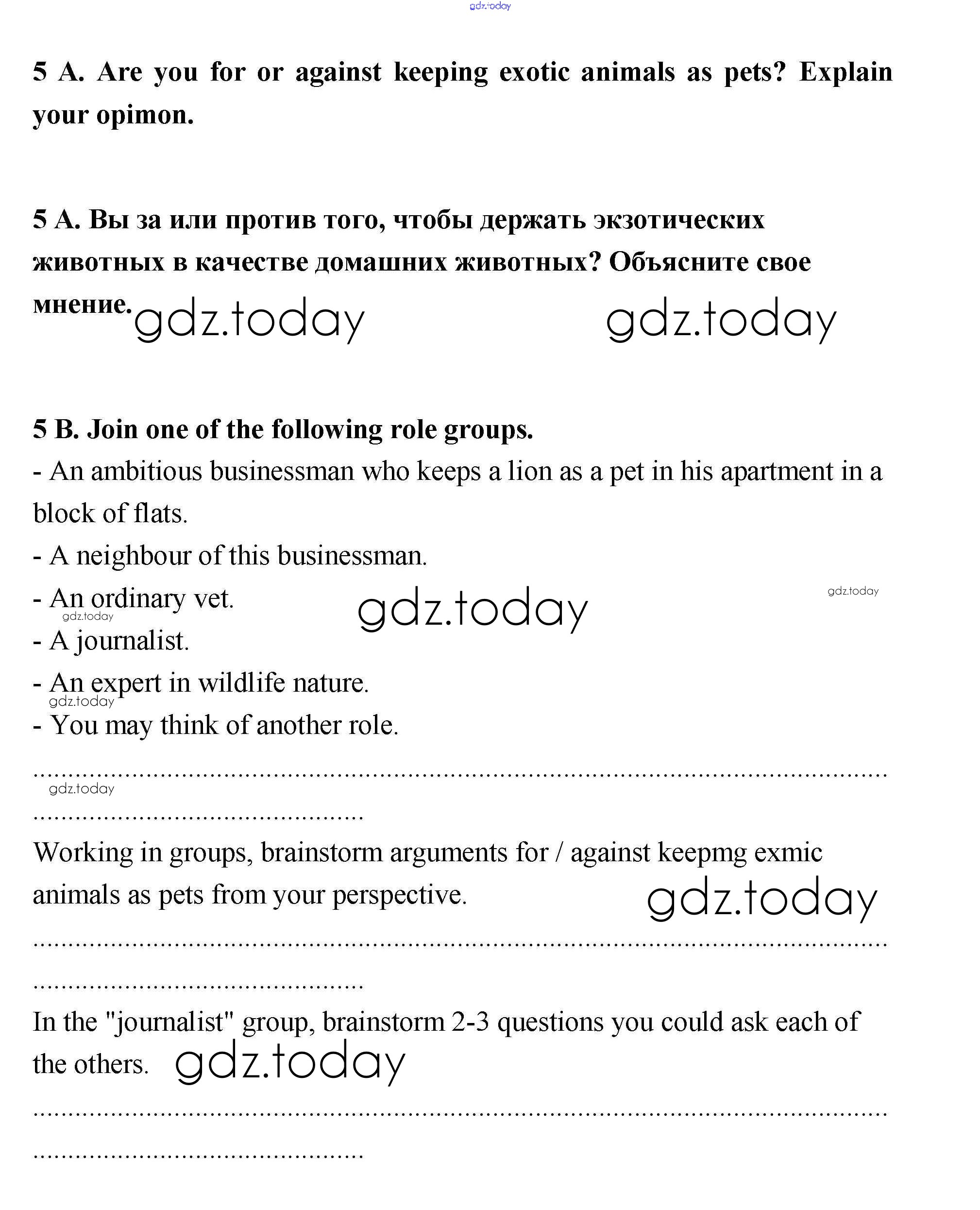 На страницах сайта gdz.today вы найдете учебный и вспомогательный материал, направленный на улучшения знаний школьной программы. ГДЗ - онлайн мир знаний Уроки 3-4 Решение к Unit 7. Animals 5 Учебнику по Английскому языку для 10 класса Гроза, Дворецкая Титул New Millennium 2014