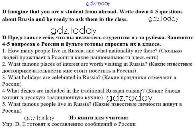 На страницах сайта gdz.today вы найдете учебный и вспомогательный материал, направленный на улучшения знаний школьной программы. ГДЗ - онлайн мир знаний Lessons 1, 2. What would you tell about Russia? Решение к Unit 3 D Учебнику по Английскому языку для 10 класса Кауфман Титул Happy English 2014