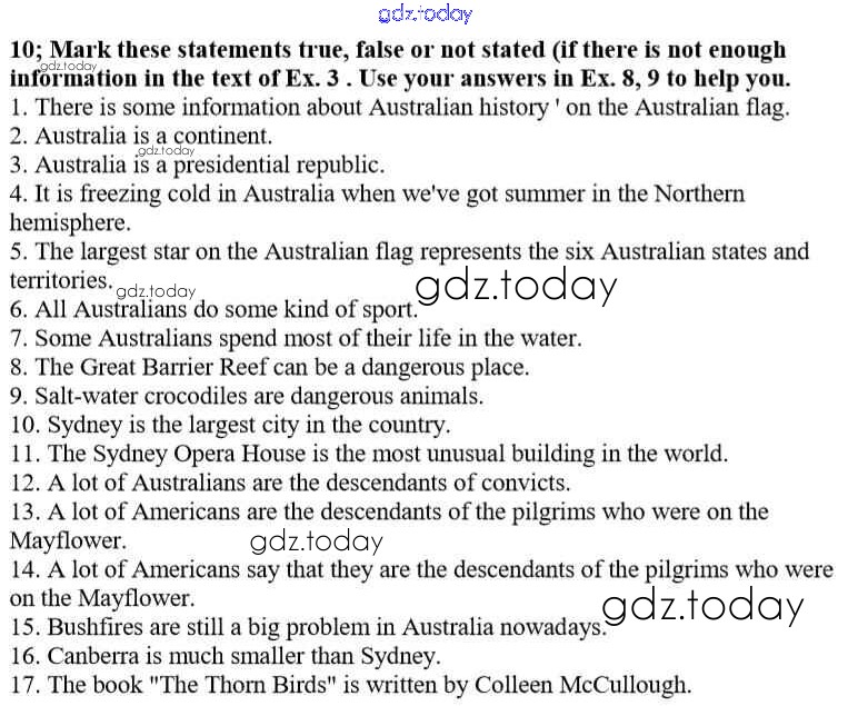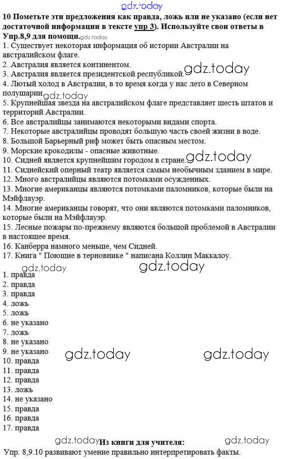 На страницах сайта gdz.today вы найдете учебный и вспомогательный материал, направленный на улучшения знаний школьной программы. ГДЗ - онлайн мир знаний Lessons 8, 9. Australia is an island, isn't it? Решение к Unit 3 10 Учебнику по Английскому языку для 10 класса Кауфман Титул Happy English 2014