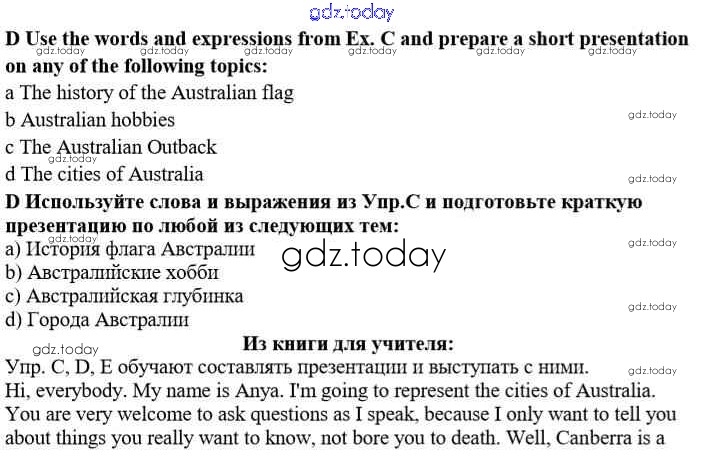 На страницах сайта gdz.today вы найдете учебный и вспомогательный материал, направленный на улучшения знаний школьной программы. ГДЗ - онлайн мир знаний Lessons 8, 9. Australia is an island, isn't it? Решение к Unit 3 D Учебнику по Английскому языку для 10 класса Кауфман Титул Happy English 2014