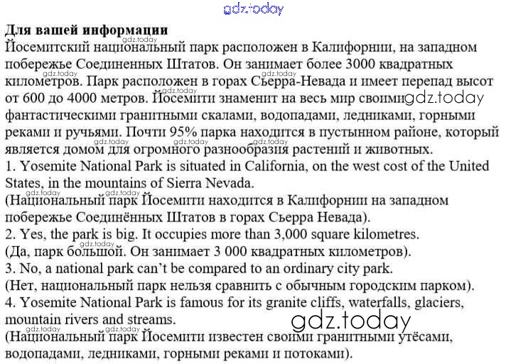 На страницах сайта gdz.today вы найдете учебный и вспомогательный материал, направленный на улучшения знаний школьной программы. ГДЗ - онлайн мир знаний Lessons 4, 5. Yosemite National Park Решение к Unit 4 3 Учебнику по Английскому языку для 10 класса Кауфман Титул Happy English 2014