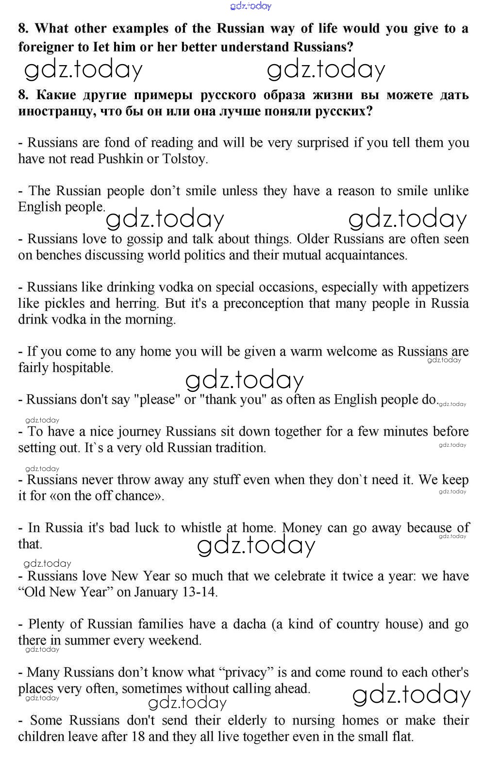 Ответы к Reading Решение к Unit 1. How Different the World Is? 8 Учебнику по Английскому языку для 10-11 класса Кузовлев, Лапа Просвещение 2012