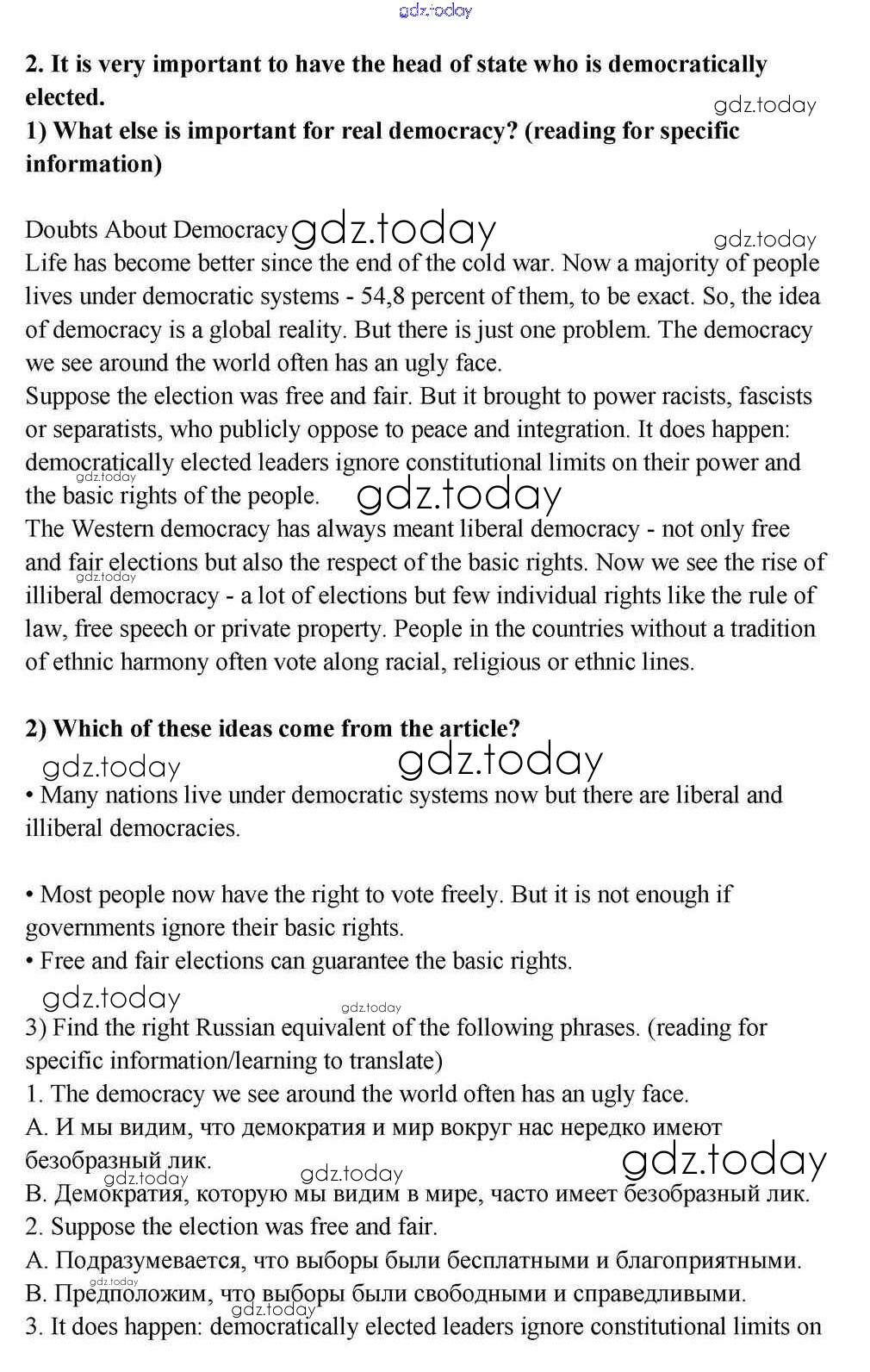 На страницах сайта gdz.today вы найдете учебный и вспомогательный материал, направленный на улучшения знаний школьной программы. ГДЗ - онлайн мир знаний Reader Решение к Unit 2. Western Democracies. Are They Democratic? 2 Учебнику по Английскому языку для 10-11 класса Кузовлев, Лапа Просвещение 2012