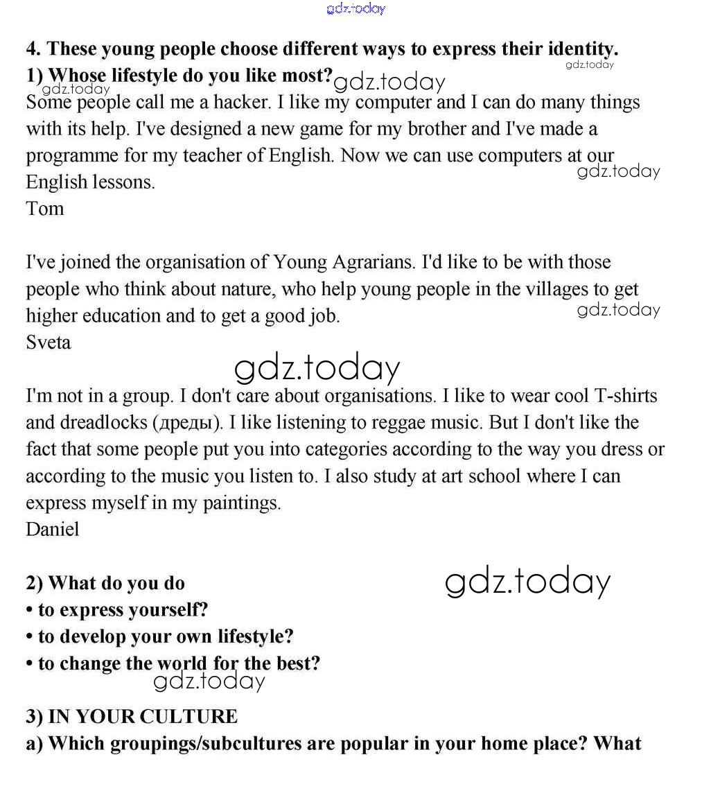 На страницах сайта gdz.today вы найдете учебный и вспомогательный материал, направленный на улучшения знаний школьной программы. ГДЗ - онлайн мир знаний Lesson 2 Решение к Unit 3. What Is Hot with the Young Generation? 4 Учебнику по Английскому языку для 10-11 класса Кузовлев, Лапа Просвещение 2012