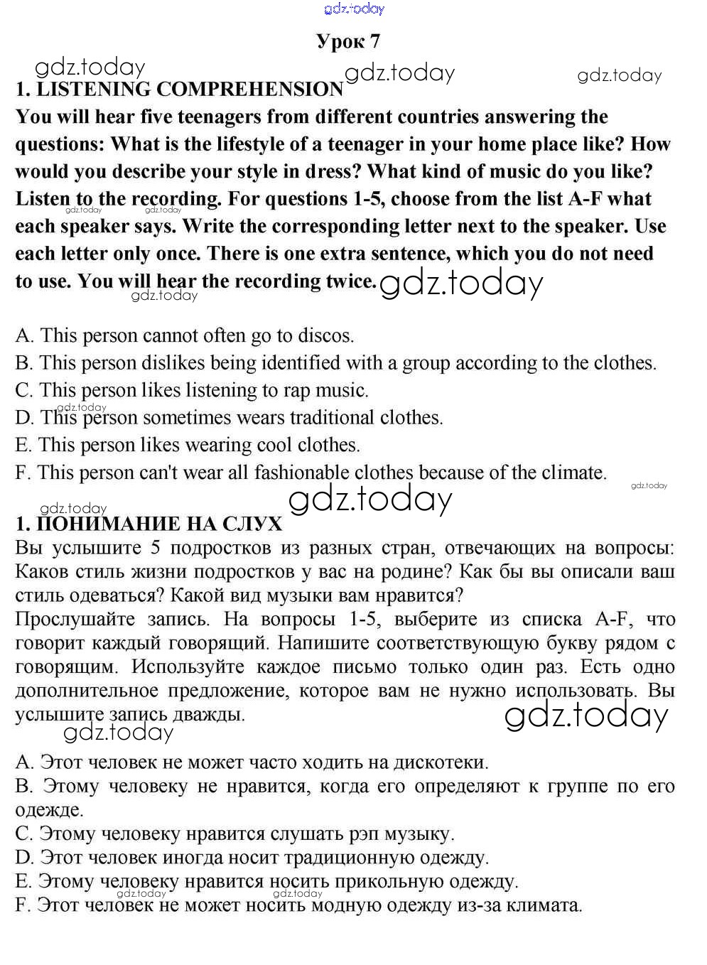 На страницах сайта gdz.today вы найдете учебный и вспомогательный материал, направленный на улучшения знаний школьной программы. ГДЗ - онлайн мир знаний Lesson 7 Решение к Unit 3. What Is Hot with the Young Generation? 1 Учебнику по Английскому языку для 10-11 класса Кузовлев, Лапа Просвещение 2012