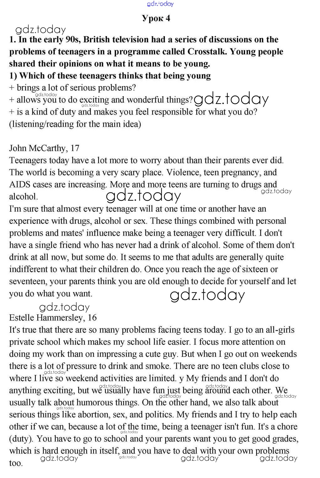 На страницах сайта gdz.today вы найдете учебный и вспомогательный материал, направленный на улучшения знаний школьной программы. ГДЗ - онлайн мир знаний Lesson 4 Решение к Unit 4. Is It Easy to Be Young? 1 Учебнику по Английскому языку для 10-11 класса Кузовлев, Лапа Просвещение 2012