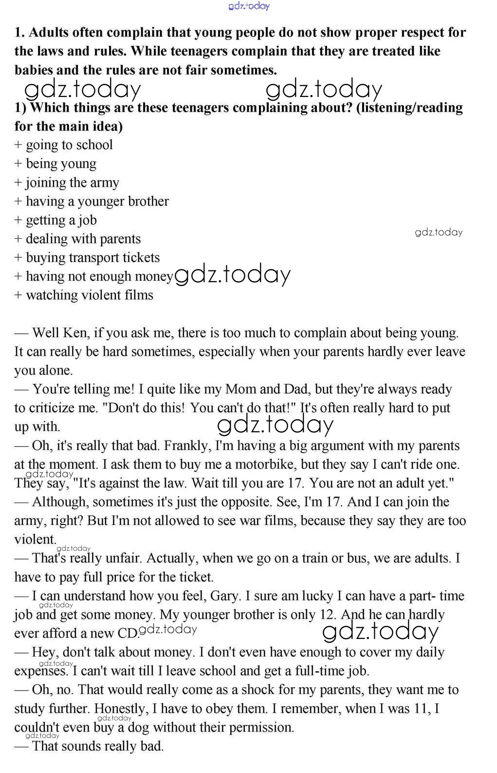 На страницах сайта gdz.today вы найдете учебный и вспомогательный материал, направленный на улучшения знаний школьной программы. ГДЗ - онлайн мир знаний Lesson 5 Решение к Unit 4. Is It Easy to Be Young? 1 Учебнику по Английскому языку для 10-11 класса Кузовлев, Лапа Просвещение 2012
