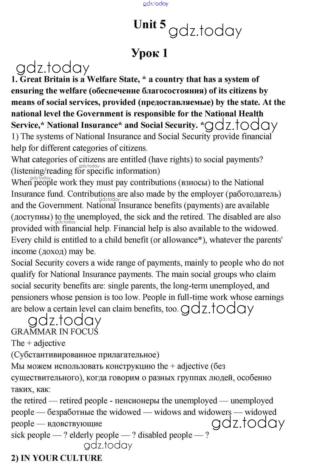 Ответы к Lesson 1 Решение к Unit 5. Is the System of Social Welfare Fair? 1 Учебнику по Английскому языку для 10-11 класса Кузовлев, Лапа Просвещение 2012