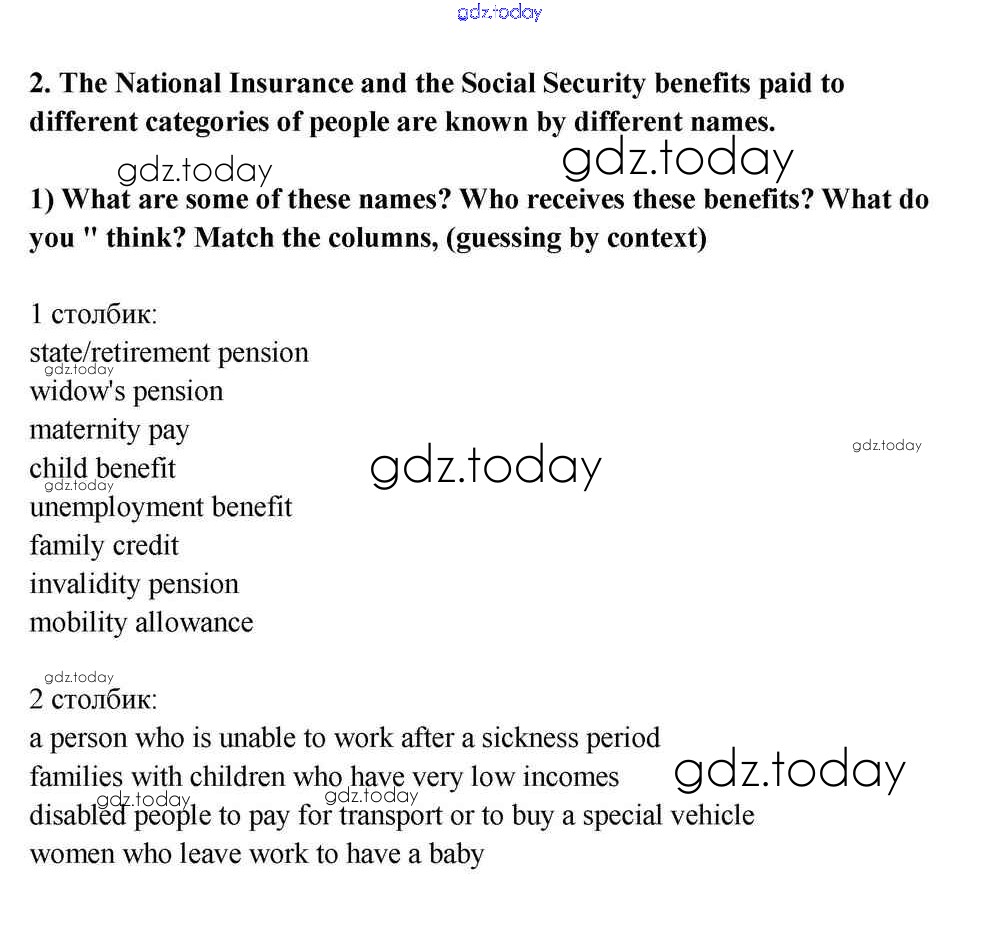 На страницах сайта gdz.today вы найдете учебный и вспомогательный материал, направленный на улучшения знаний школьной программы. ГДЗ - онлайн мир знаний Lesson 1 Решение к Unit 5. Is the System of Social Welfare Fair? 2 Учебнику по Английскому языку для 10-11 класса Кузовлев, Лапа Просвещение 2012