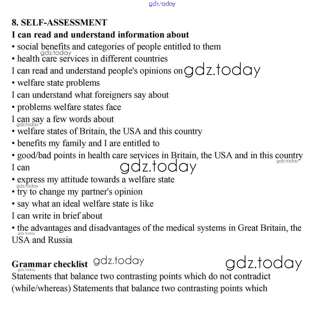 На страницах сайта gdz.today вы найдете учебный и вспомогательный материал, направленный на улучшения знаний школьной программы. ГДЗ - онлайн мир знаний Lesson 7 Решение к Unit 5. Is the System of Social Welfare Fair? 8 Учебнику по Английскому языку для 10-11 класса Кузовлев, Лапа  Просвещение  2012