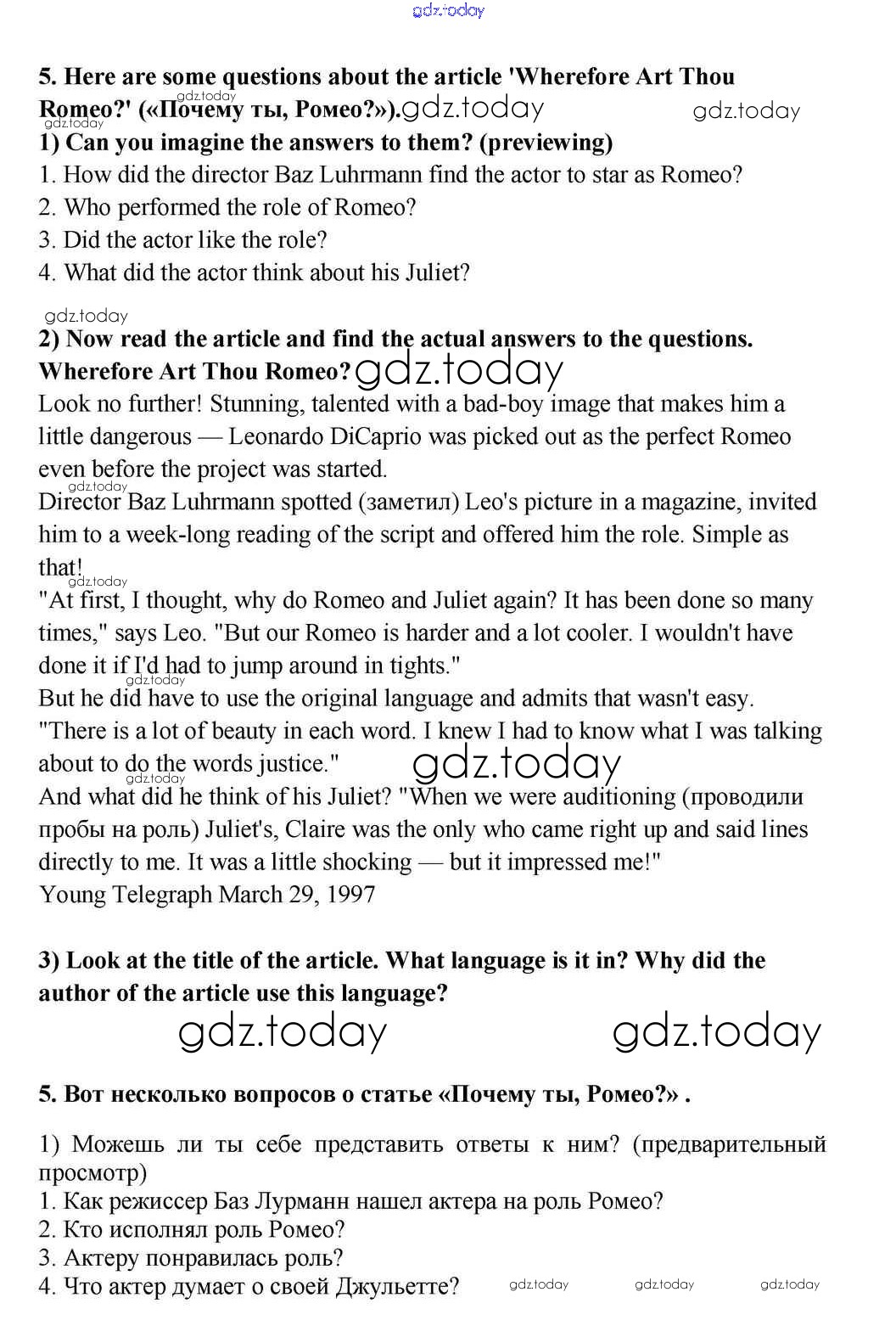На страницах сайта gdz.today вы найдете учебный и вспомогательный материал, направленный на улучшения знаний школьной программы. ГДЗ - онлайн мир знаний Reading Решение к Unit 6. What Helps You to Enjoy Yourselves? 5 Учебнику по Английскому языку для 10-11 класса Кузовлев, Лапа Просвещение 2012