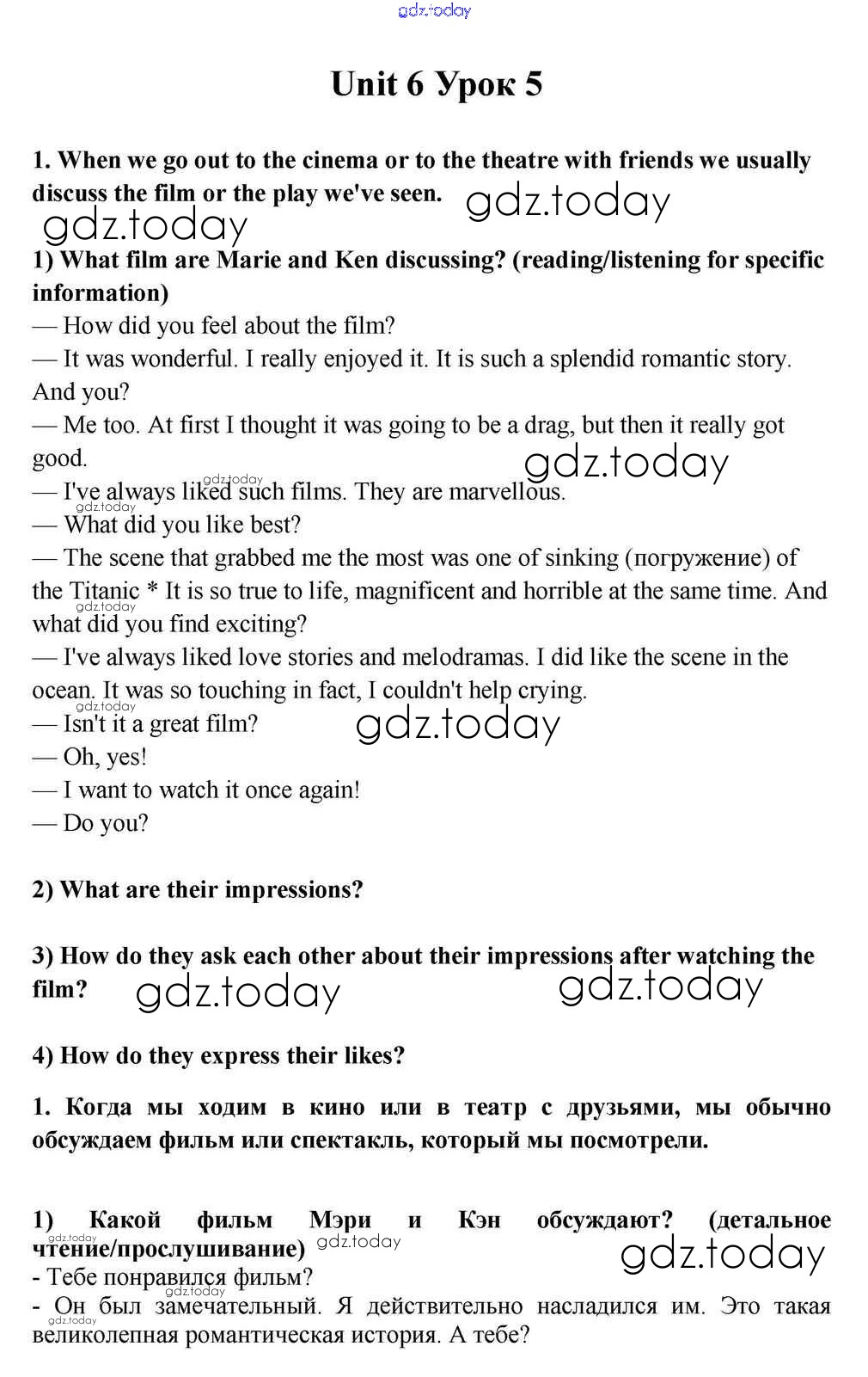 На страницах сайта gdz.today вы найдете учебный и вспомогательный материал, направленный на улучшения знаний школьной программы. ГДЗ - онлайн мир знаний Lesson 5 Решение к Unit 6. What Helps You to Enjoy Yourselves? 1 Учебнику по Английскому языку для 10-11 класса Кузовлев, Лапа  Просвещение  2012