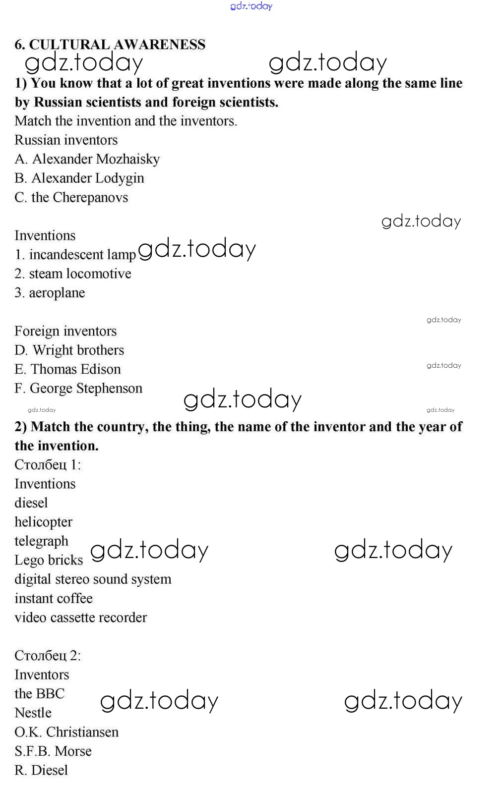 На страницах сайта gdz.today вы найдете учебный и вспомогательный материал, направленный на улучшения знаний школьной программы. ГДЗ - онлайн мир знаний Lesson 6 Решение к Unit 7. Inventions That Shook the World 6 Учебнику по Английскому языку для 10-11 класса Кузовлев, Лапа  Просвещение  2012