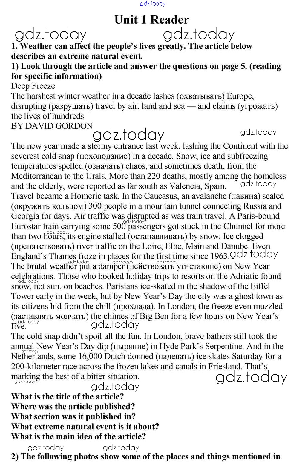 Ответы к Unit 1 Решение к Reader 1 Учебнику по Английскому языку для 10-11 класса Кузовлев, Лапа Просвещение 2012
