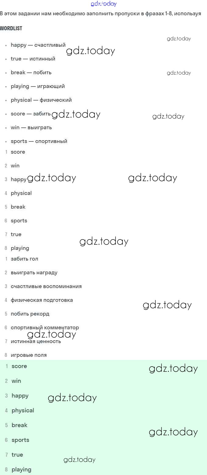 Ответы к Reading and vocabulary Решение. Module 1. Sports & Entertainment 4 Рабочей тетради по Английскому языку для 10 класса Баранова, Дули Углубленный уровень Просвещение Starlight 2021