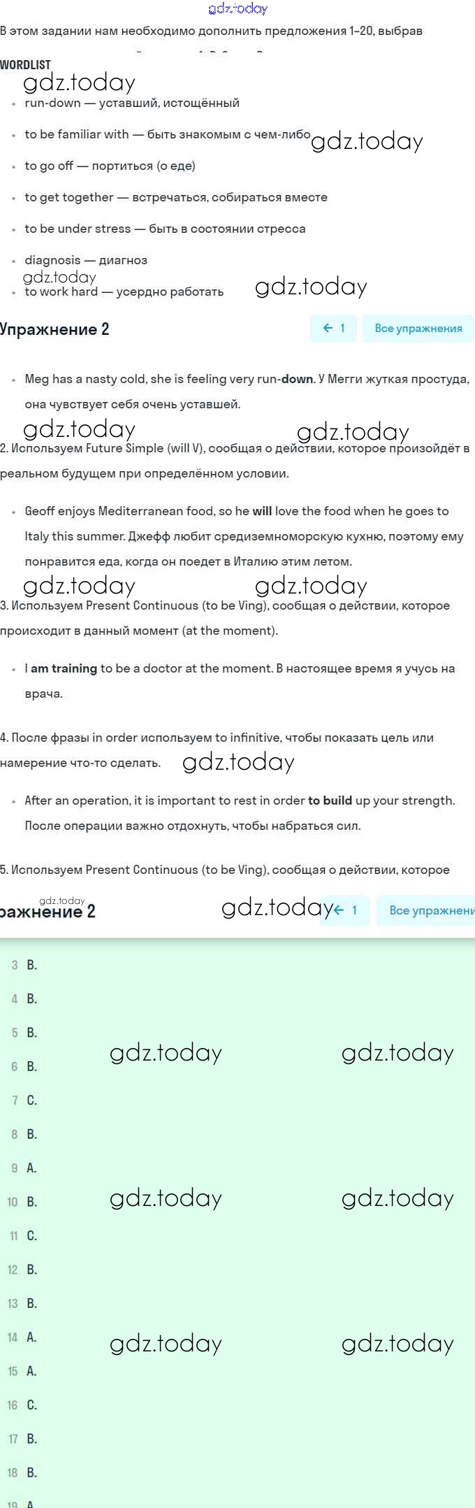 На страницах сайта gdz.today вы найдете учебный и вспомогательный материал, направленный на улучшения знаний школьной программы. ГДЗ - онлайн мир знаний Vocabulary and grammar practice II Решение. Module 2. Food, Health and Safety 2 Рабочей тетради по Английскому языку для 10 класса Баранова, Дули Углубленный уровень Просвещение Starlight 2021
