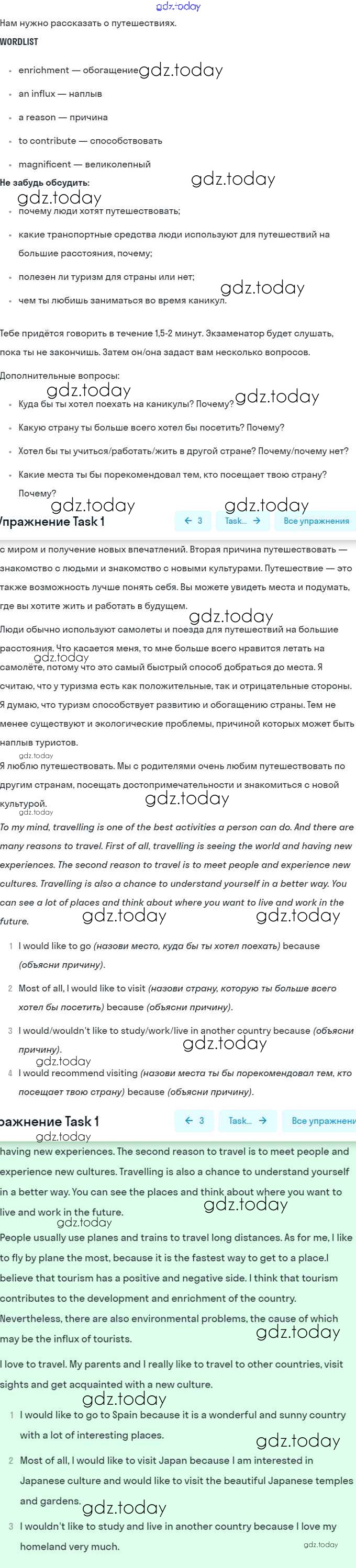 На страницах сайта gdz.today вы найдете учебный и вспомогательный материал, направленный на улучшения знаний школьной программы. ГДЗ - онлайн мир знаний Listening and speaking Решение. Module 3. Travel Time Task 1 Рабочей тетради по Английскому языку для 10 класса Баранова, Дули Углубленный уровень Просвещение Starlight 2021