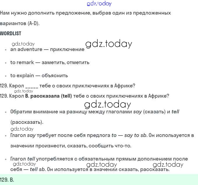 На страницах сайта gdz.today вы найдете учебный и вспомогательный материал, направленный на улучшения знаний школьной программы. ГДЗ - онлайн мир знаний B Решение. Further practice section 129 Рабочей тетради по Английскому языку для 10 класса Баранова, Дули Углубленный уровень Просвещение Starlight 2021