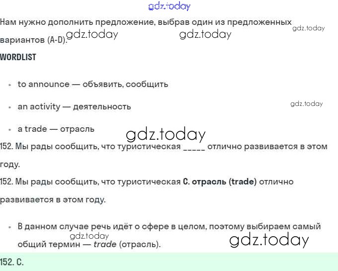 На страницах сайта gdz.today вы найдете учебный и вспомогательный материал, направленный на улучшения знаний школьной программы. ГДЗ - онлайн мир знаний B Решение. Further practice section 152 Рабочей тетради по Английскому языку для 10 класса Баранова, Дули Углубленный уровень Просвещение Starlight 2021